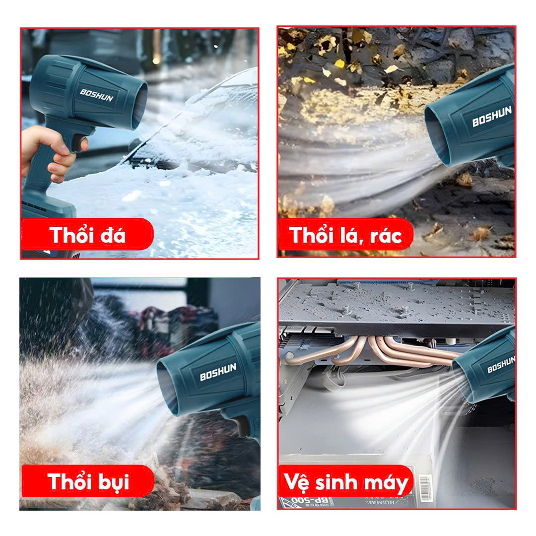 Với thiết kế gọn nhẹ, tay cầm chắc chắn, máy thổi phản lực Boshun mang lại cảm giác thoải mái khi sử dụng lâu dài. Ngoài ra, máy còn có độ bền cao, vận hành ổn định, tiết kiệm điện năng và ít tiếng ồn, giúp người dùng yên tâm trong quá trình sử dụng