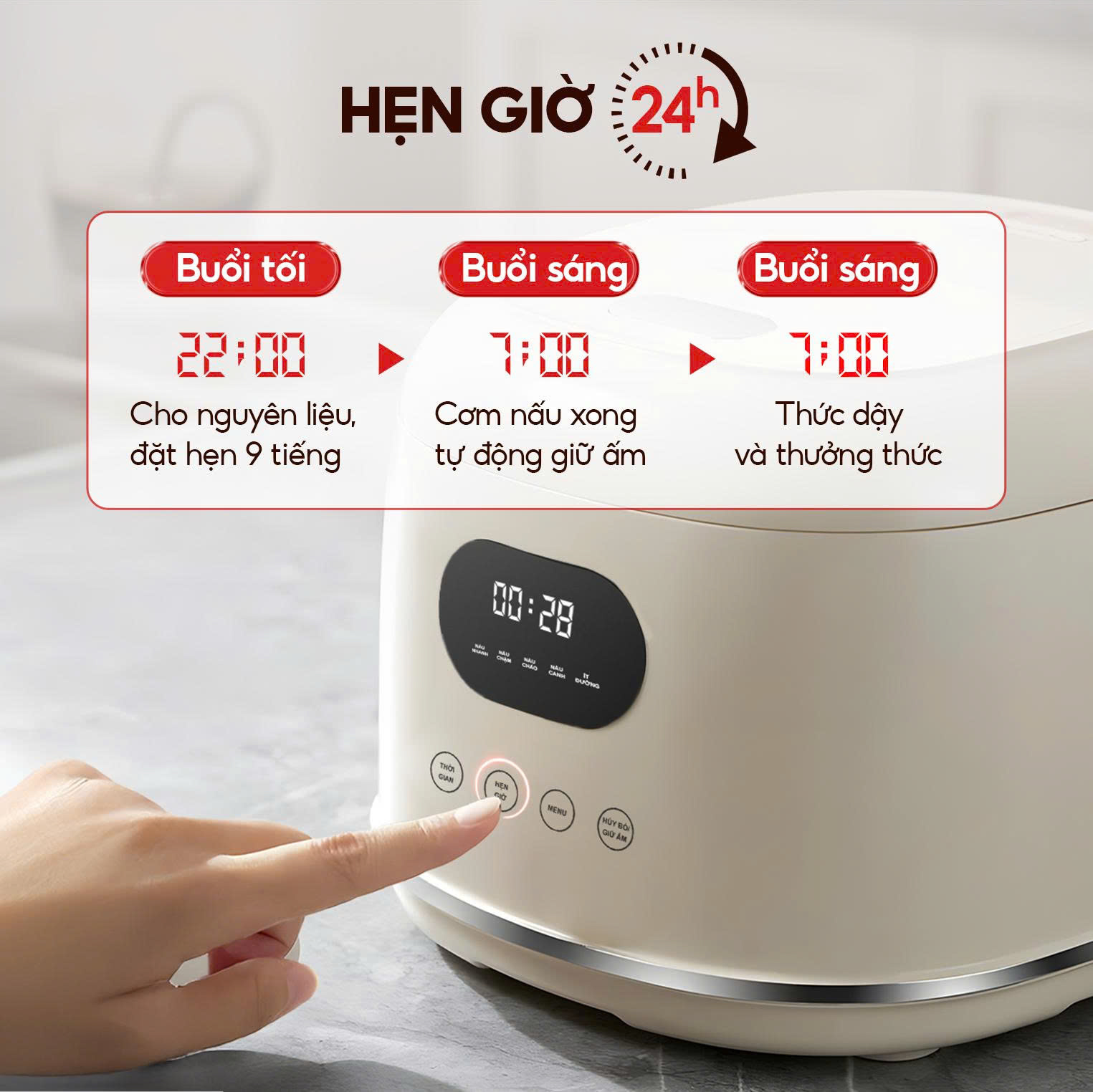 Nồi cơm điện Venko tích hợp 5 chức năng nấu cực tiện lợi: nấu chậm, nấu nhanh, nấu cháo, nấu canh, nấu cơm ít đường