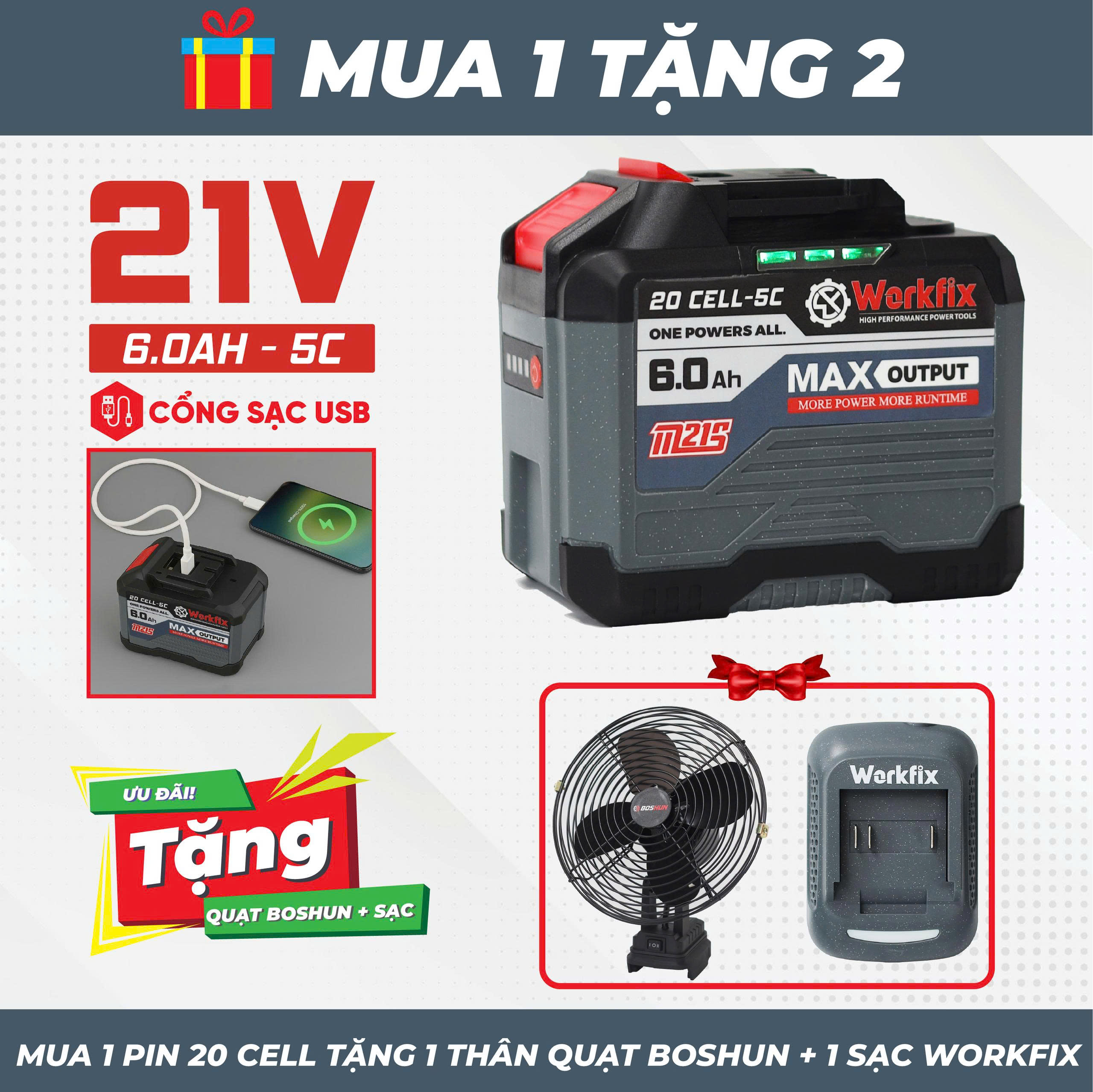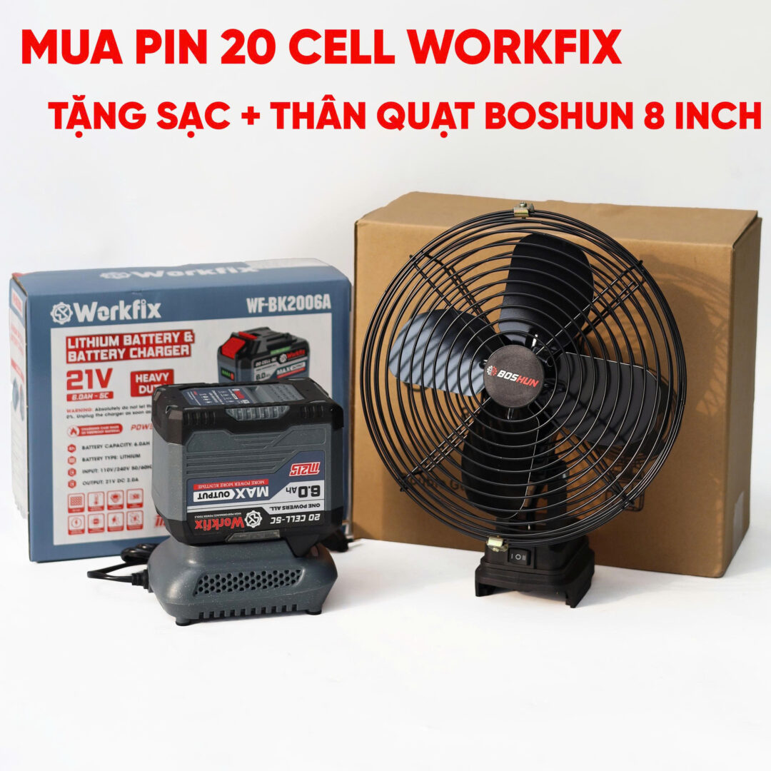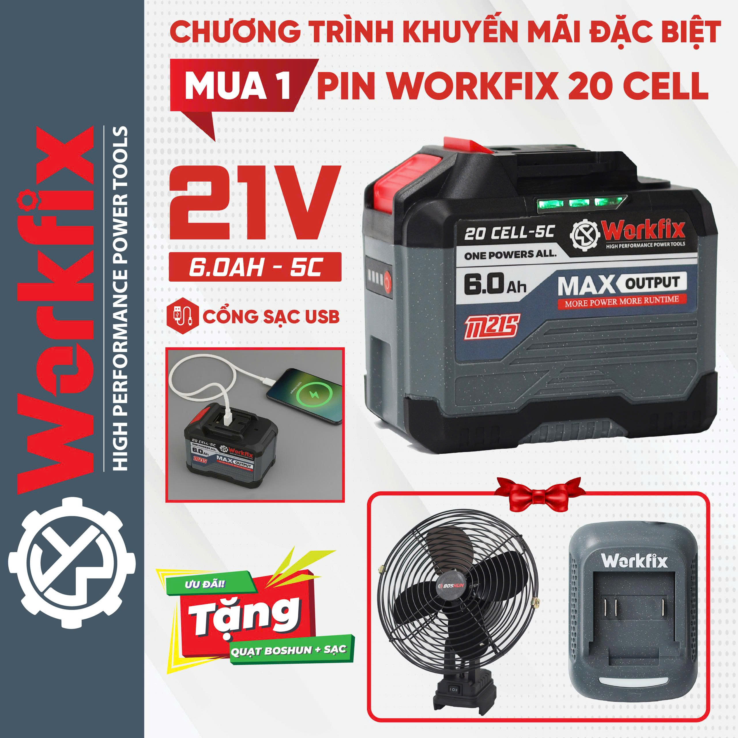 TẶNG SẠC 2A và QUẠT 8INCH - PIN 20Cell Workfix WF-BK2006ASkip to content