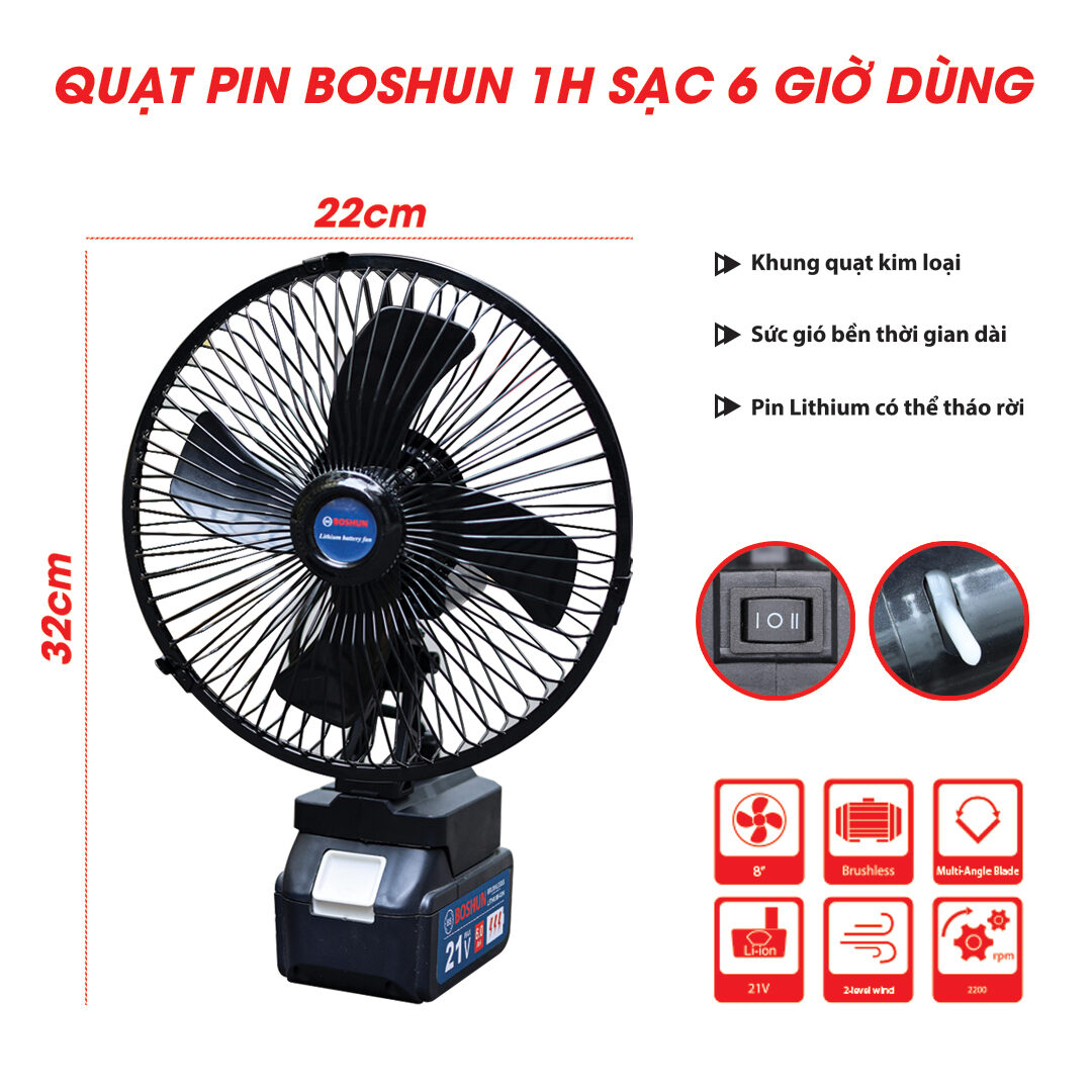 - QUẠT DÙNG PIN BOSHUN TIỆN DỤNG CHÂN PIN PHỔ THÔNG – 1 PIN DÙNG 6-8h